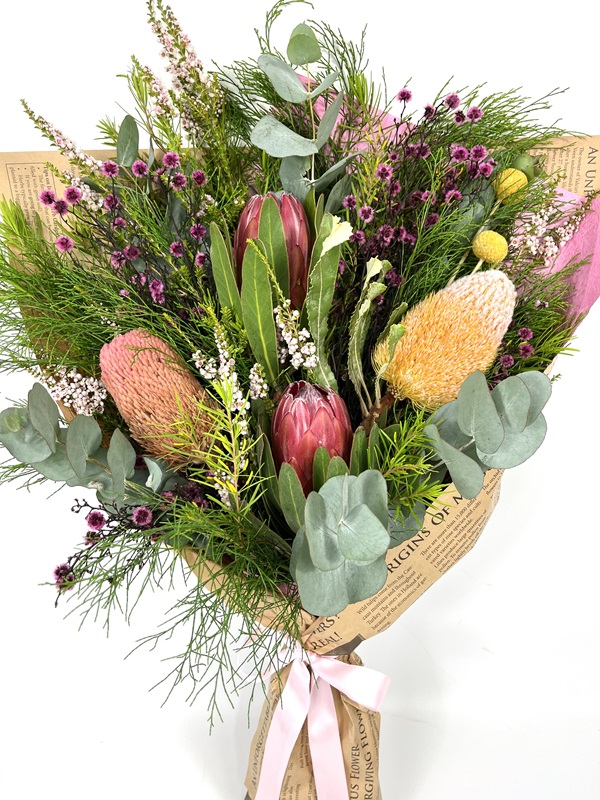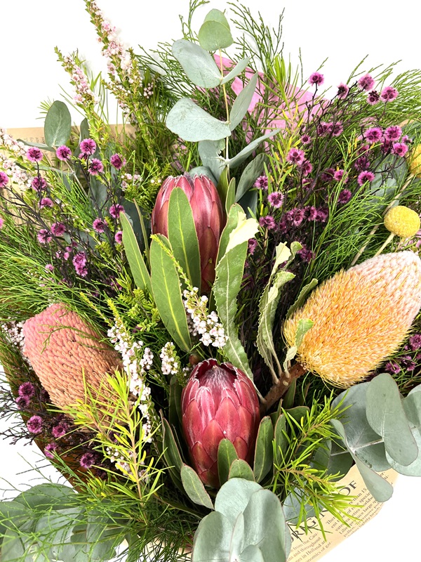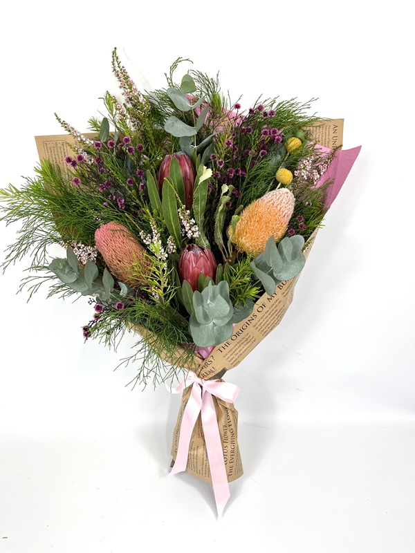 Experience the vibrant beauty of Australia’s diverse flora with our Australian Native Bouquet. Overflowing with native charm, this stunning arrangement is perfect for adding an authentic touch to any occasion while supporting Australian growers. Rustic, textural and timeless. Flowers may be substituted according to seasonal availability – always fresh, always beautiful.